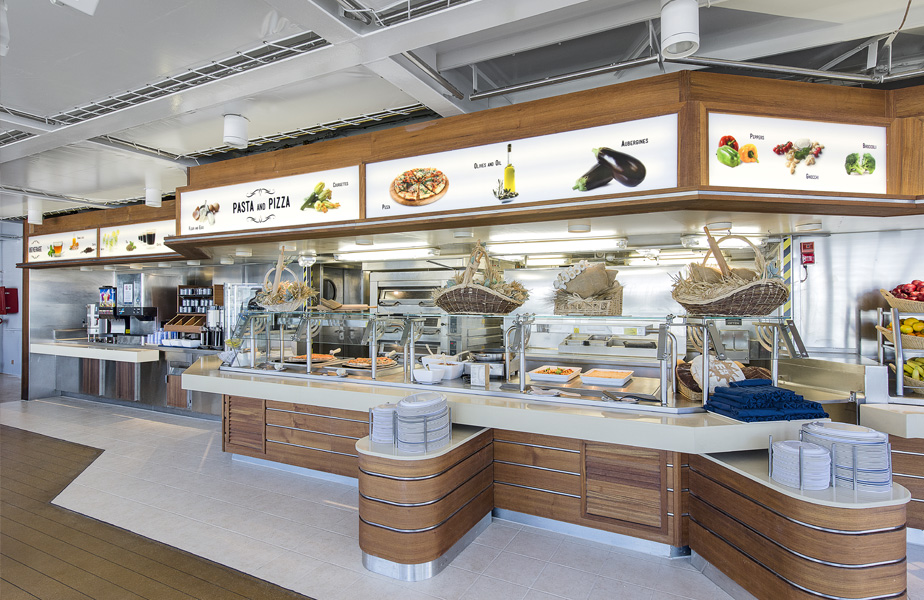 Alle Kabinen mit Satelliten-TV, Klimaanlage, Minibar, Safe, Radio, DU/WC, Telefon. 2 Restaurants, Pizzeria, Grill, Internet Cafe mit 16 Terminals, Virtual Zentrum, Diskothek, Theater, Einkaufsgalerie, Kasino, Fitnessraum, Joggingpfad, Fotograf, 2 Swimmingpools, 2 Whirlpools, Sauna, Arzt/ Hospital, 6 Aufzüge, Wäscherei, Sonstiges: Kinderspielzimmer, Kinderpool, verschiedene Gesellschaftsräume. Alle gängingen Kreditkarten, Bordwährung EURO.