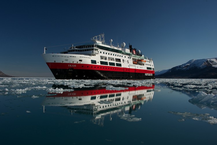 MS Fram, benannt nach dem Polarschiff des berühmten Entdeckers Fridtjof Nansen , wurde am 24. April 2007 in Dienst gestellt und ist damit das jüngste Schiff der Hurtigruten Flotte. Die Fram wurde speziell für Entdecker-Seereisen in der Arktis und Antarktis mit Eisklasse 1B und den modernsten technischen Standards, wie zwei Stabilisatoren in der Mitte des Schiffes, konzipiert. Die Fram verfügt über 136 Kabinen. Neben den geschmackvoll ausgestatteten Suiten (16–40 m²) gibt es eine Auswahl an 2-Bett- bis 4-Bett-Außen- und -Innenkabinen (10–12 m²). Ein großzügiger Panorama-Salon und weitläufige Decksflächen ermöglichen herrliche Ausblicke auf eindrucksvolle Eisberge. Die Fram bietet außerdem Vortragsräume, Restaurant, Internetzugang, Bord-Shop sowie Cafeteria und Bar. Whirlpools, Saunen und ein Fitnessraum runden das Angebot ab.