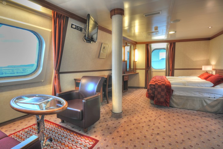 Standardkabinen: Die Standardkabinen (Kategorie U, P, N, J, L, I, A und D) unterscheiden sich im Wesentlichen bei allen Schiffen durch Lage und Größe, die auch innerhalb einer Kategorie variieren können. Alle Standardkabinen sind modern und komfortabel mit Dusche, WC, Bettwäsche, Handtüchern und Föhn ausgestattet. Die 3- und 4-Bett-Kabinen haben zusätzliche Oberbetten. In den Außenkabinen gibt es größtenteils ein großes rechteckiges Fenster, zum Teil mit Bullauge auf den Decks 2 und 3 bzw. Decks A - C. Bei einigen Kabinen können Rettungsboote und/oder deren Aufhängung die Sicht einschränken. Auf den älteren Hurtigruten Schiffen MS Vesterålen, MS Lofoten und MS Nordstjernen sind die Kabinen insgesamt einfacher und zweckmäßiger eingerichtet. Die Kategorie D hat ein Waschbecken in der Kabine und Dusche/ WC auf dem Gang. Nur einige Kabinen verfügen über einen Föhn, dafür sind in allen Kabinen Bettwäsche, Handtücher und der entsprechende Wechselservice vorhanden. Alle Abbildungen zeigen beispielhaft die unterschiedlichen Kabinenkategorien. Da die Schiffe unterschiedlich groß sind und aus verschiedenen Baujahren stammen, kann es innerhalb einzelner Kabinenkategorien und bezüglich der Beschreibungen zu Variationen in Schnitt, Größe und Bettenstellung kommen. Details zu Lage und Ausstattung der Suiten und Mini-Suiten ( nicht auf den Schiffen MS Vesterålen, MS Lofoten und MS Nordstjernen ) bei uns auf Anfrage.