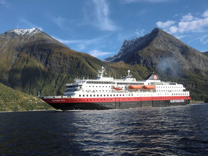 MS Richard With wurde nach dem berühmten norwegischen Kapitän und Hurtigruten Gründer benannt. Ihm ist es zu verdanken, dass die legendäre Postschifflinie seit ihrer Einrichtung im Jahr 1893 zu einem wesentlichen Bestandteil des norwegischen Küstenlebens geworden ist. Die Richard With nahm ihren Dienst 1993 auf, genau ein Jahrhundert nach der ersten Hurtigruten Fahrt. Sie ist eine Art Kunstgalerie auf hoher See und präsentiert viele verschiedene Kunstwerke, die von der bekannten Familie Harrstammen. Panorama-Salon „Horisont“ und Aussichts-Salon „Syvstjernen“ sorgen für unvergessliche Ausblicke auf die wunderbare Landschaft, zwei Whirlpools an Deck für Entspannung in freier Natur. Zusätzlichen Komfort bieten 10 Suiten.