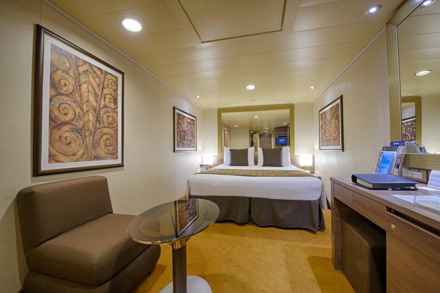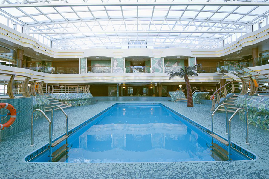 Ihre Kabinen: Alle Betten können entweder als Einzelbetten oder als Doppelbetten genutzt werden (auf Anfrage). Geräumiger Kleiderschrank. Badezimmer mit Dusche. Interaktives TV-Gerät. Telefon. Internetzugang für Ihren Laptop (wird extra berechnet). Minibar und Zimmersafe. Klimaanlage. Kabinengröße der Innenkabinen ca. 16 m², Kabinen mit Meerblick ca. 17 bis 20 m², Balkonkabinen ca. 22 m² ( Balkonkabinen mit behindertengerechter Einrichtung ca. 32 m²). Balkonsuiten ca 33 m². Aurea-Suiten mit zusätzlicher Nintendo Wii Konsole, Kabinengröße ca. 21 bis 47 m². Yacht Club Suiten Kabinengröße ca. 26 bis 52 m². Ausstattung/Einrichtungen: 3 Hauptrestaurants, verschiedene Spezialitätenrestaurants ( z.B. das Sacramento Tex Mex Restaurant ), unterschiedlichste Bars und Lounges ( z.B. die Golden Jazz Bar ) und ein fulminantes Unterhaltungsangebot: das hochmoderne Phanteon Theater mit Plätzen für 1.600 Personen, die futuristische Disko und das Casino Veneziano mit über 1.000 m².
