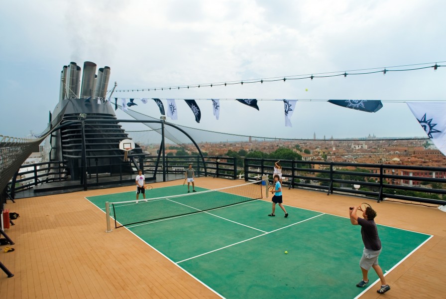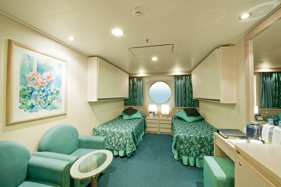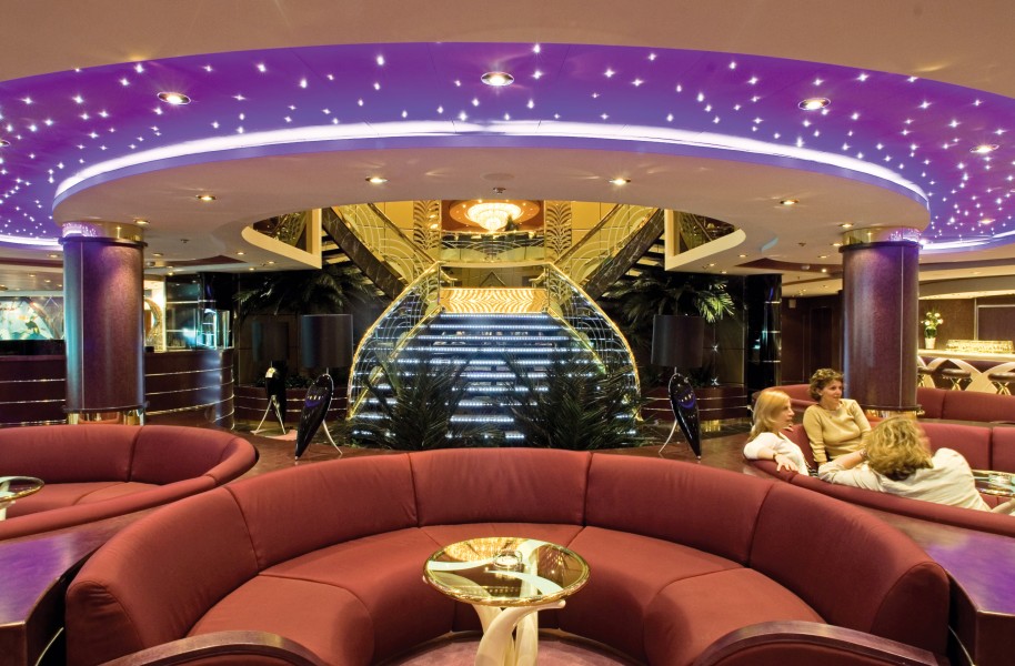 Alle Kabinen sind in elegantem Design konzipiert und mit Bad oder Dusche/WC, Telefon, TV, interaktivem TV, Minibar, Tresor und individuell einstellbarer Klimaanlage ausgestattet. 13 Bars & Lounges: z.B. Havana Club, The Golden Bar, Blue Velvet Bar, Crystal Lounge, Cyber Café, verschiedene Poolbars. Kinderclub, 2 Planschbecken, Teens Club, Shopping in den Einkaufs-Arkaden, Parfümerie, Juwelier, Duty-Free Shops. 4 Restaurants: Le Maxim´s, L´Oleandro, Gli Archi Cafeteria, Il Giardino. Kunstgalerie, Internet Café, Fotogalerie, Konferenzräume. Sport: Mini Golf, Golf Simulator, Tennisplatz, Joggingpfad, Fitnesscenter. 2 Pools und 4 Whirlpools. Beste Unterhaltung im Theater, Diskothek, Kino, Casino, Bibliothek, Lese- und Kartenraum, Rauchersalon. Wellness: Saunen, Dampfbäder, Hydrotherapie, Aromatherapie, Chromtherapie, Yoga, Beautysalon, Solarium. Ärztliche Versorgung im medizinischen Zentrum.