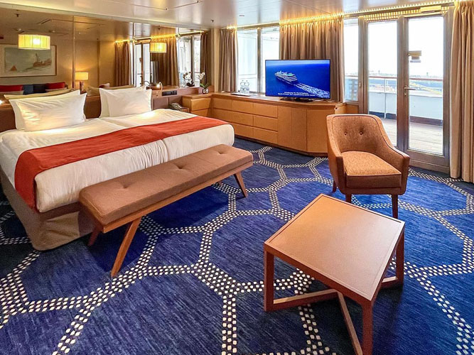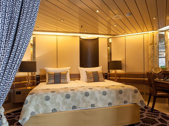 Kabineninformation: Ihr Zuhause auf hoher See: An Bord der MS Vasco da Gama finden Sie genau die passende Kabine für Ihre Kreuzfahrt auf den Weltmeeren. Egal auf welchem Deck und in welcher Kategorie, Sie werden sich rundum wohlfühlen. Alle unsere Kabinen sind mit einem Kleiderschrank, Dusche oder Badewanne, WC, einer individuell regulierbaren Klimaanlage / Heizung, einem Safe und einem SAT-TV ausgestattet. Die Betten können auf Wunsch getrennt gestellt werden. In allen Kabinen sind Haartrockner vorhanden. Innenkabinen von 16.4 qm bis 17.0 qm, Aussenkabinen ( mit Bullaugen, Fenstern, teilweise Sichtbehinderung, Lage vorn/achtern, ) von 16.0 qm bis 18.5 qm und Balkonkabinen ( vorn/achtern ) von 20.9 qm. Extras für Gäste aller Balkonkabinen Kategorie 13 & 14: Willkommensgruß mit Obstteller, 1 Flasche Wein & Wasser, bevorzugter Check-In & Check-Out (nach Möglichkeit), Atlas, Fernglas, Regenschirm & Bademantel für die Dauer der Reise, sowie Frotteeslipper. Suiten und Penthouse Suite auf Anfrage.